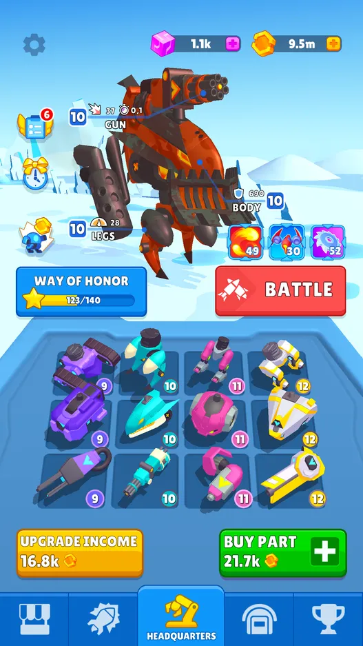 Work hard to improve your robot. Boost its power, change its appearance and upgrade its characteristics with new parts. Thanks to all possible customization settings, you can create an almost invulnerable warrior whose skills will help you take a worthy place in the world rankings. In addition to quick rounds, you will have access to large-scale royal battles, where the title of winner will be awarded only to the one who clears the field of opponents first. You can download the latest version of the game Armored Robots with mods and cheats using the link below.