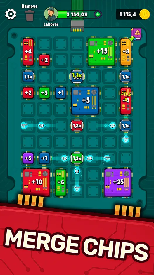 In the game BitCoiner, all you have to do here is gradually turn a set of basic chips and boards into a powerful computing system. You’ll see how one small element gradually develops into a complex computing node. Throughout the gameplay, you need to perform four simple actions: add new chips, combine them into nodes, increase the performance of the resulting reactor, and prepare a plan for filling the playing field.