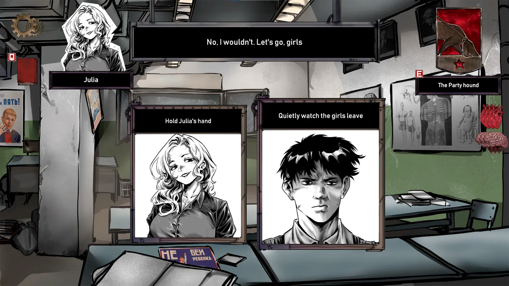 The gameplay is presented through dialogue boxes with action options. Everyday situations and everyday life are interspersed with satire and occasional, yet profound reflections. You’ll constantly touch on familiar themes: self-deception, financial difficulties, the triumph of winning, burnout, and responsibility for others.
