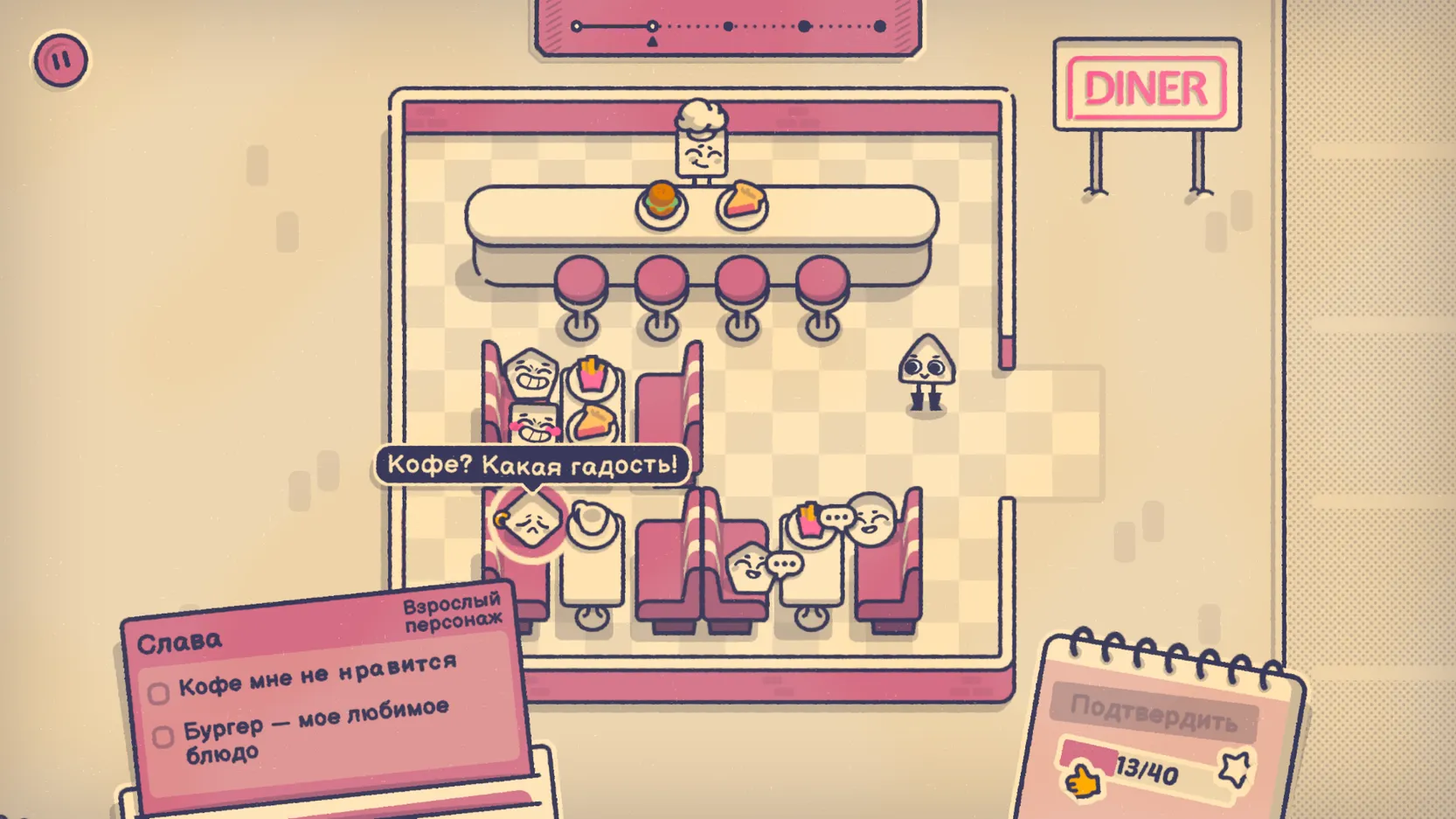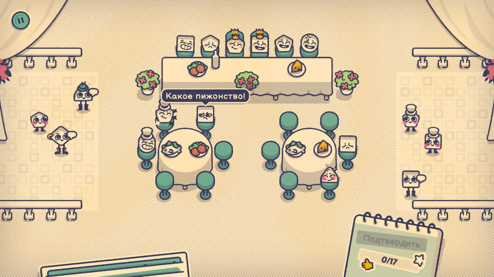 Is This Seat Taken? на андроид – это увлекательная логическая головоломка с приятной графикой и несложными для выполнения заданиями. Вы возьмете на себя роль распорядителя — человека, ответственного за рассадку посетителей и гостей. В самом начале вы получите набор с различными геометрическими фигурами. Каждая из них будет символизировать персонажа с подготовленным списком рекомендации и требований. Для достижения цели вам нужно учесть все их пожелания таким образом, чтобы не возникло противоречий.
