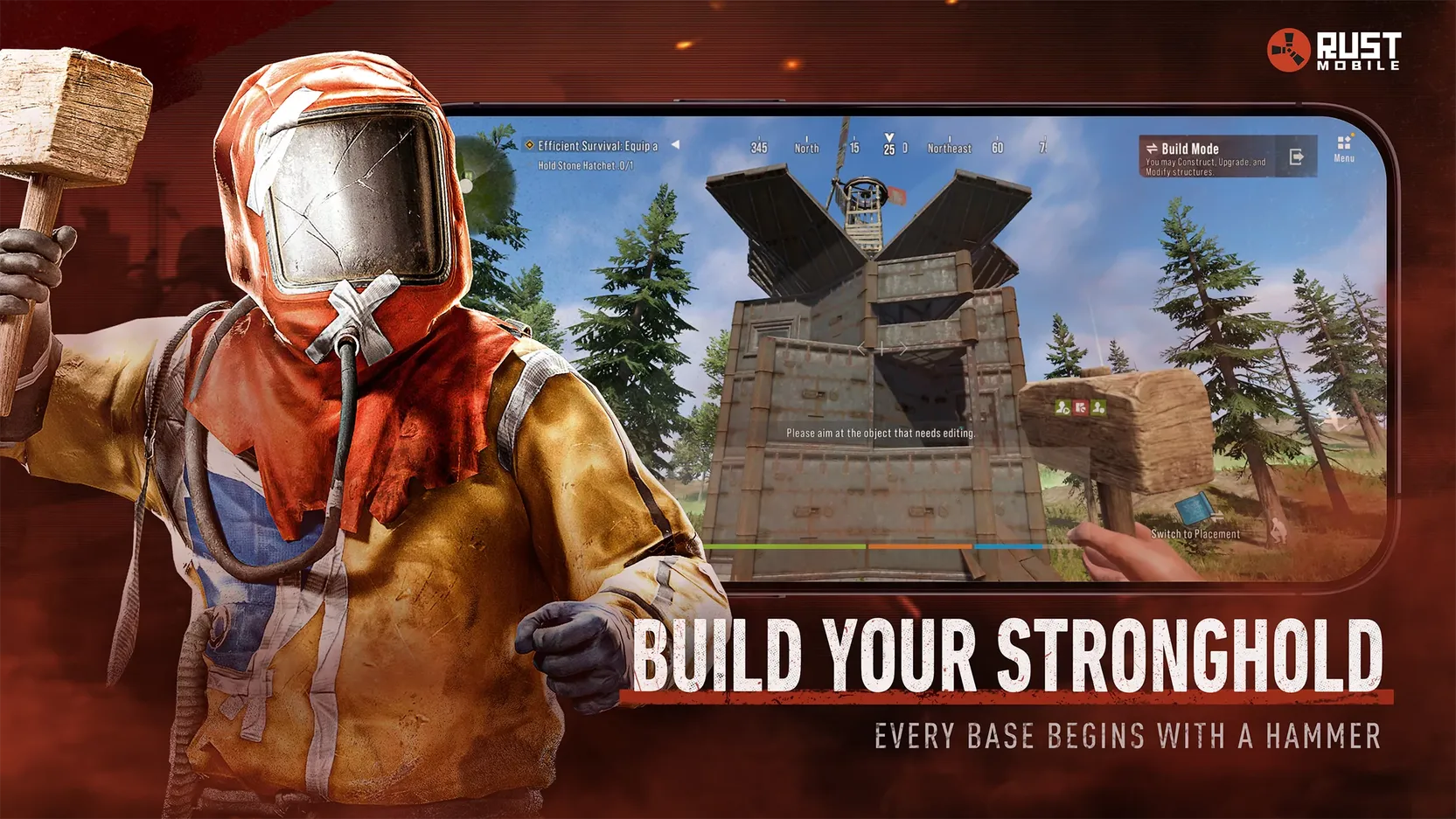 В игре Rust Mobile первое, что от вас потребуется – это найти подходящее места для размещения лагеря. Лишь после этого можно отправляться осматривать местность. Важно регулярно пополнять резервы металла, ведь внушительные запасы позволят продолжать изучать предметы.