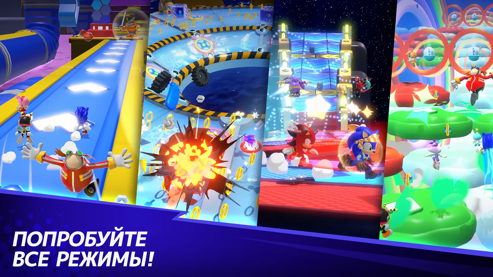 Площадка для испытаний оборудована множеством движущихся платформ и замаскированных ловушек. Вы окажетесь в центре безумной гонки с увлекательными приключениями и привычной для стиля Соника скоростью. Победы в коротких динамичных забегах принесут игровую валюту. Ее можно потратить на покупку новых скинов и аксессуаров для украшения персонажа. Скачать последнюю версию игры Sonic Rumble с модами и читами вы можете, воспользовавшись размещенной ниже ссылкой.